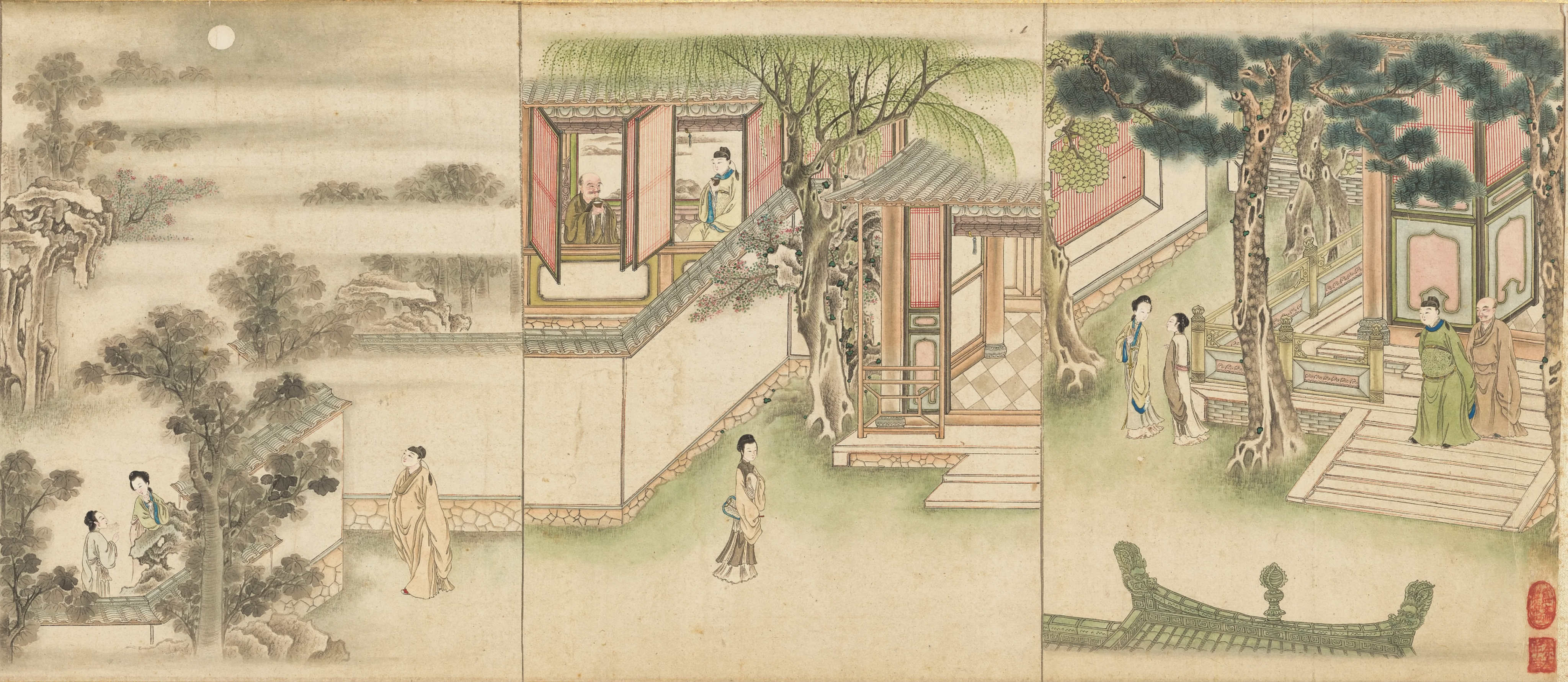 《会真全图 西厢故事图卷》清禹之鼎绘 纸本设色 切斯特·比替藏书楼藏